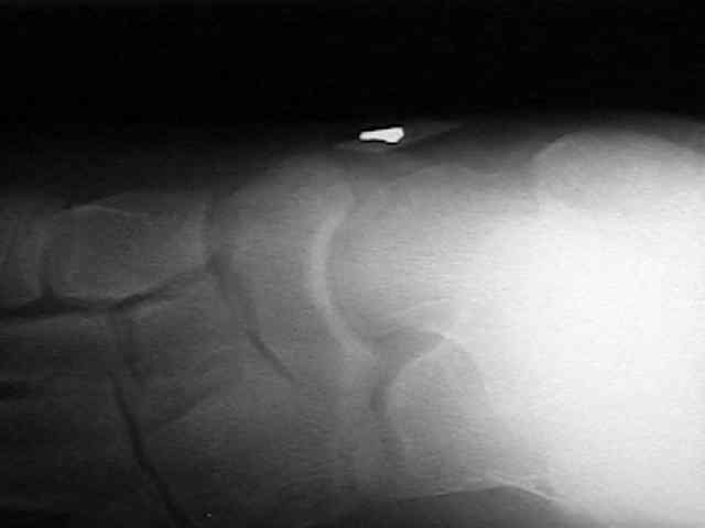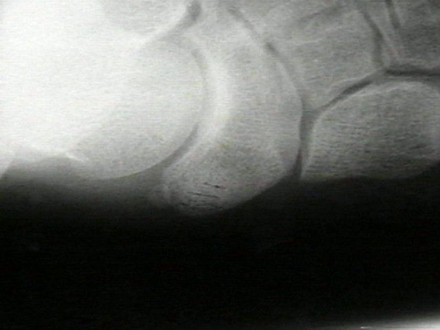 the way to suture it to the undersurface is by drilling 2 holes (2 mm drill) from dorsal aspect of navicular to the plantar aspect and using a suture retriever to pull the sutures through, making a knot dorsally over the bony bridge (alternative: bone anchoring sutures: Harpoon or Mitek anchor)